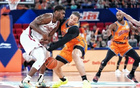 第二节前半段两队形成相持,上半场结束前古德温、张镇麟和李弘权连续投中三分球,主队打出一波进攻高潮,以52比42占优。